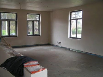 De vloer wordt gevoegd met vloeibare cement ( niet te lang laten intrekken!!!).